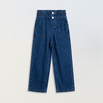 Pantalones vaqueros informales de primavera y otoño para niños y niñas, monos rectos holgados de alta calidad con botones, pantalones vaqueros con bolsillos para niños