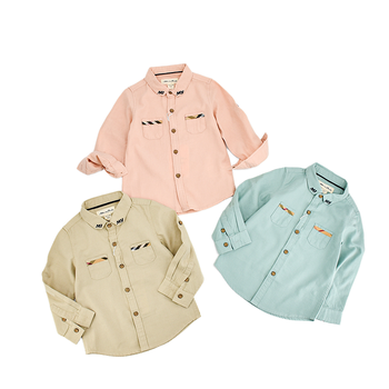Camisa informal de algodón para niño Color sólido Manga larga Tela estampada simple y cómoda Estilo liso para niños