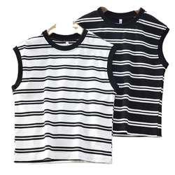 Chaleco informal de verano 2025 para niños, tejido de punto con cuello redondo y patrón de dibujos animados a rayas para niños de 6 a 16 años