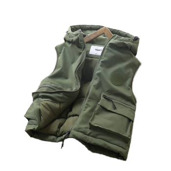 Nuevo chaleco cálido para niños de otoño e invierno, chaleco para niños con cuello levantado, chaqueta sin mangas de algodón para niños con capucha y cremallera